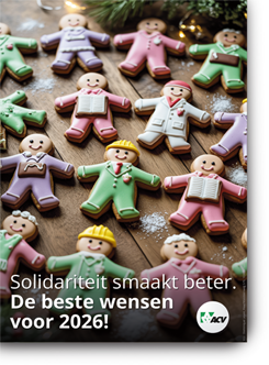 Je mengt 200 gram solidariteit en 200 gram rechtvaardigheid in een grote kom. Je voegt voorzichtig een beetje gelijkheid en respect toe en roert tot je één geheel hebt. Neen, Vakbeweging is niet ‘Ons Kookboek’ geworden. Maar we willen van de gelegenheid gebruik maken om jullie reeds warm te maken voor het eindejaar. Hang onze affiche op in je onderneming! En mocht je toch koekjes maken: die smaken altijd beter tijdens een overlegmoment met de collega’s, of tijdens een vakbondsactie.